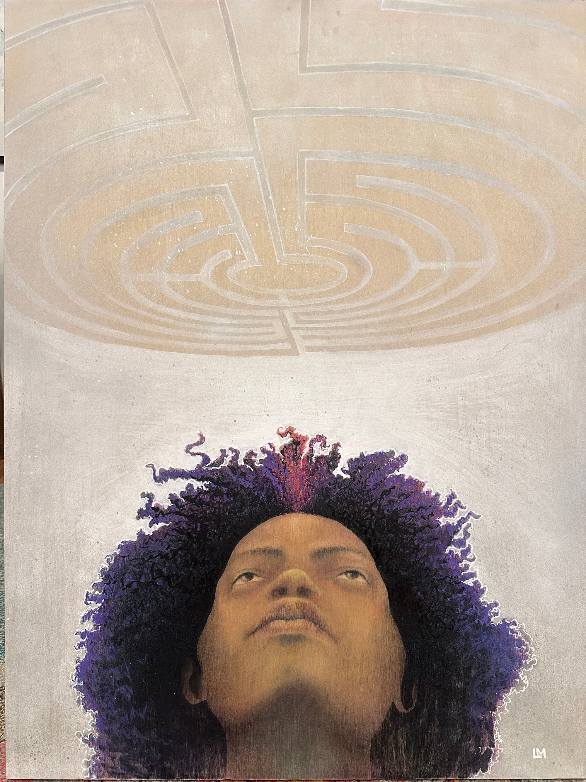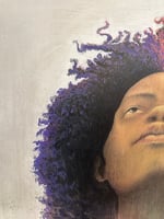 Reproduction print of a commission work. First time doing a portrait in my style on 30x40" panel. I enjoyed it, but wish the wood grain had more variation.